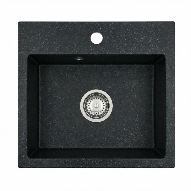 • This sink is made from an environmentally friendly composite material consisting of granite and synthetic resin. This material is extremely robust, hygienic, and resistant to high temperatures, making it ideal for everyday kitchen use.