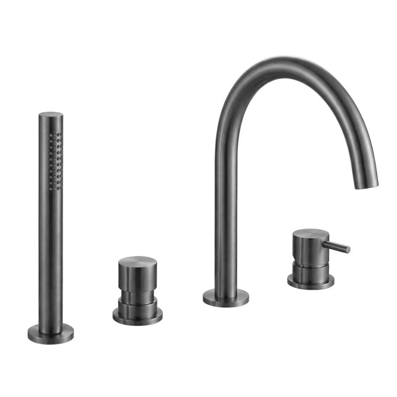 Waterevolution Flow 4-hole bath faucet for Bathtub rim mounting full PVD Gun Metal T138GME